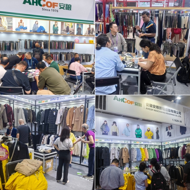 服裝展位則緊扣“綠色環(huán)保”與“工藝創(chuàng)新”兩大趨勢:棉服系列采用再生棉材質(zhì),精準(zhǔn)契合全球低碳消費需求;PU雨衣類服裝應(yīng)用高頻工藝,無需縫線即可實現(xiàn)平整外觀,兼顧視覺美感與實用性能。這一系列創(chuàng)新產(chǎn)品成功吸引來自法國、英國、比利時等歐洲中高端市場采購商重點關(guān)注,已有多組客戶明確表達(dá)合作意向。